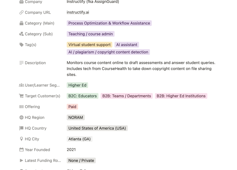 AI-in-Edtech Product Database/Market Mapping